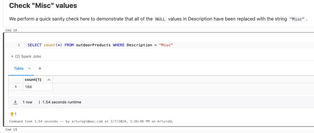 COALESCE – This command is popular among many different SQL dialects. We can use it to replace NULL values. For all NULL values in the Description column, COALESCE() will replace the null with a value you include in the function. In this case, the value is "Misc". For more information about COALESCE, check the documentation.