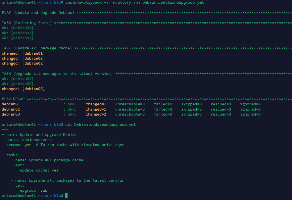 Ansible: Update and Upgrade Debian Servers Image Reply Run: $ ansible-playbook -i inventory.ini Debian.updateandupgrade.yml